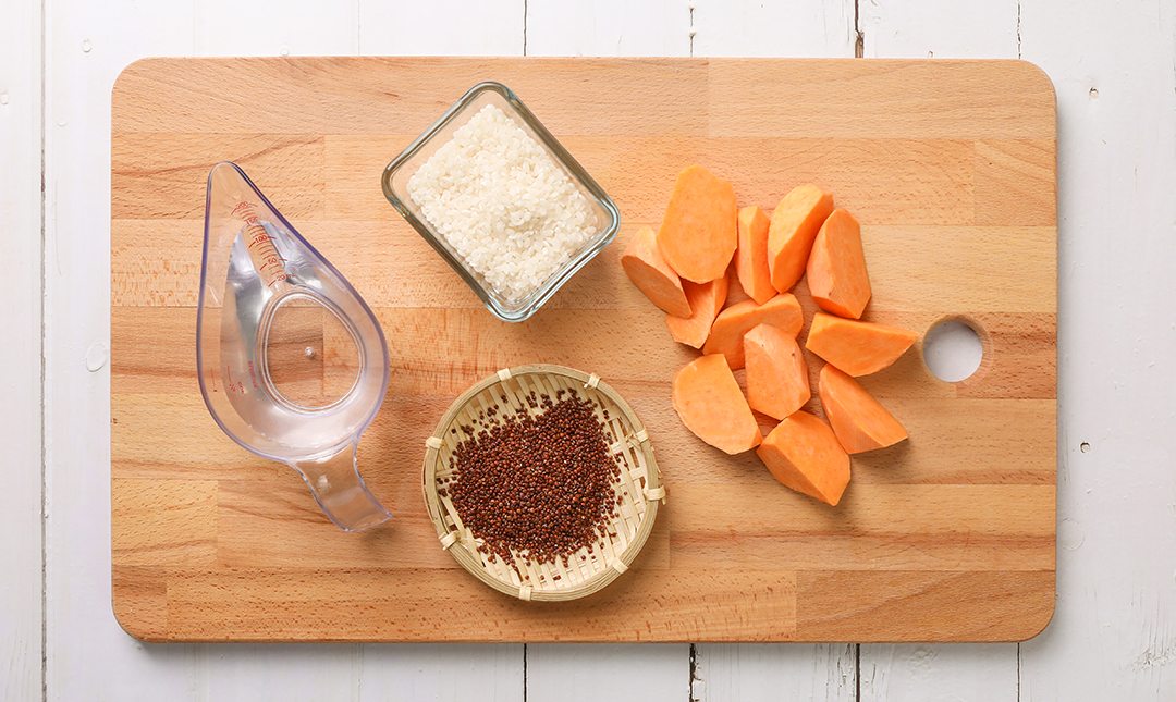 先将地瓜红藜饭材料洗净后放入内锅。